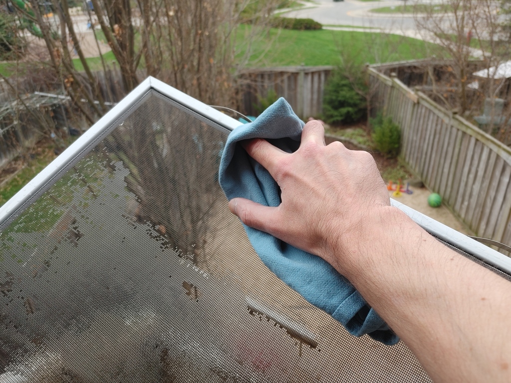 Screens allow that wonderful fresh air through. That also means they trap dust, pollen, pet hair and other floating particles like a coffee filter! We can clean this material off to let the air flow and keep your views to the world clear.